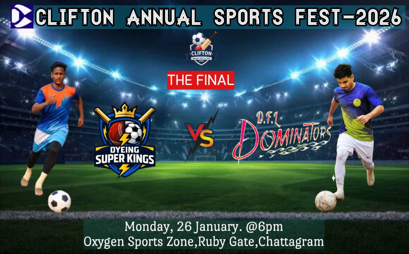 Both teams have delivered impressive performances throughout the tournament, and the final is expected to be a thrilling conclusion to the football segment of the Clifton Group Football & Cricket Tournament Fest 2026.